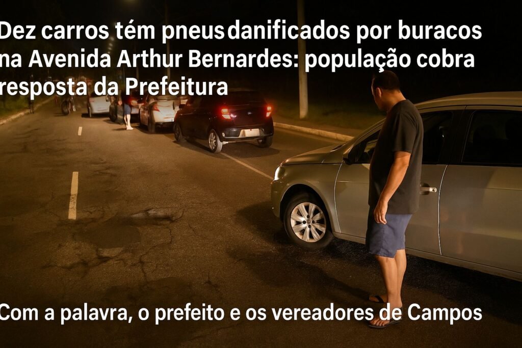 Campos dos Goytacazes – A paciência dos motoristas chegou ao limite. Na noite de ontem, cerca de dez veículos tiveram seus pneus rasgados ao passarem por buracos na Avenida Arthur Bernardes, uma das principais vias da cidade. Revoltados, os moradores registraram vídeos e enviaram as imagens ao Fiscal do Povo, denunciando o abandono e a falta de manutenção das ruas de Campos.